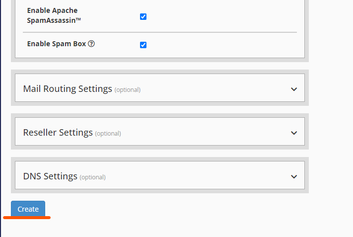 - DNS Settings: Choose whether you want WHM to automatically configure the DNS for the domain. For most users, the default setting is fine.